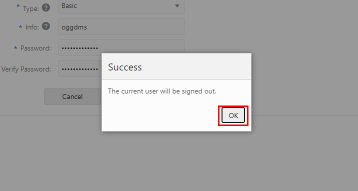 - GoldenGate管理者ユーザー名 - 2. Oracle Goldengate Microservicesインスタンスの設定で設定したユーザー名(デフォルトはoggadmin)
