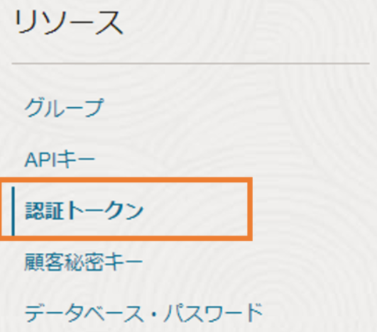 画面左下のリソースメニューから、「認証トークン」を選択します。