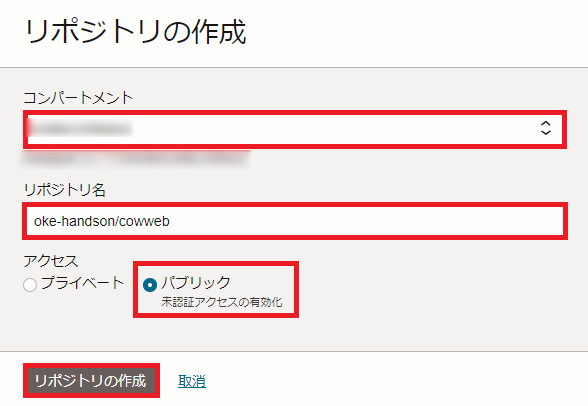 OCIRはOracleが提供するコンテナレジストリのマネージドサービスです。ここでは、1.3.で作成したコンテナイメージをOCIRにプッシュ(アップロード)します。