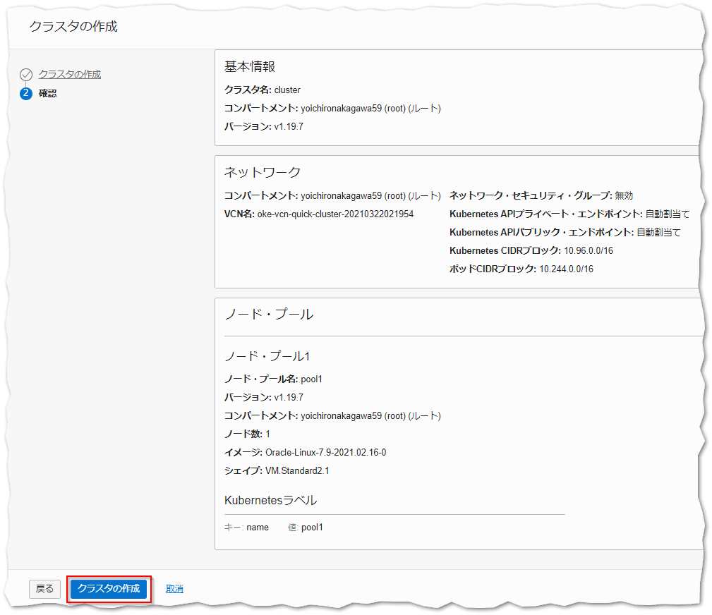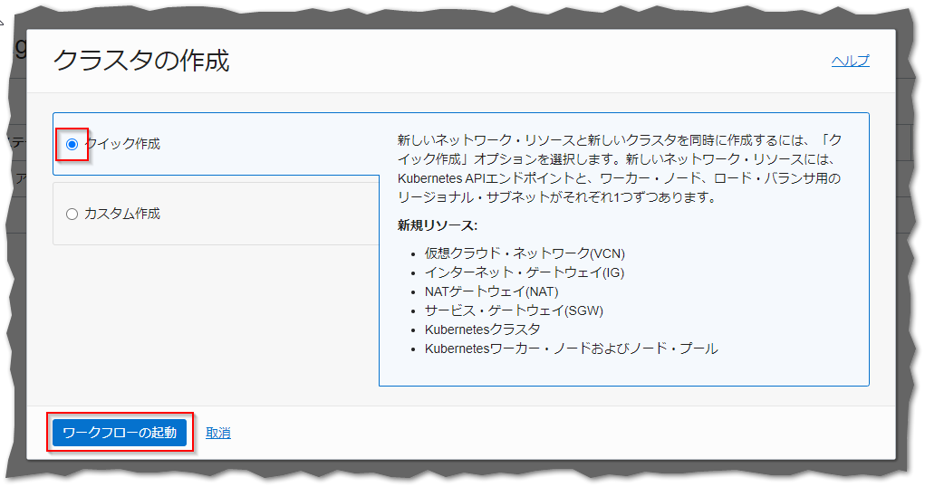 ここでは、OKEクラスターのプロビジョニングを行います。ここでの手順を実施することにより、OKEのコントロールプレーンとKubernetesクラスターの構築が同時に行われます。