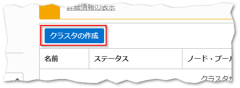 クラスタ一覧画面で、クラスタの作成をクリックします。