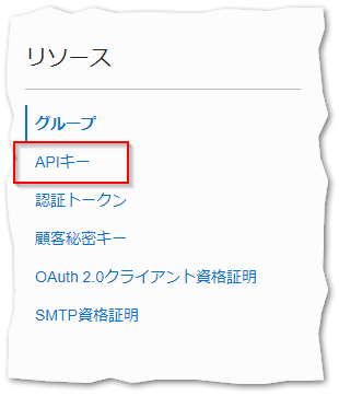 ユーザーの詳細画面をスクロールしてAPIキーをクリックします。