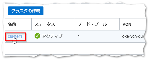 先の手順で作成しておいたcluster1の名前をクリックします。