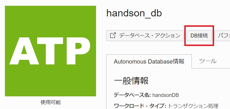 ステータスが「使用可能」になったら、「DB接続」をクリックします。