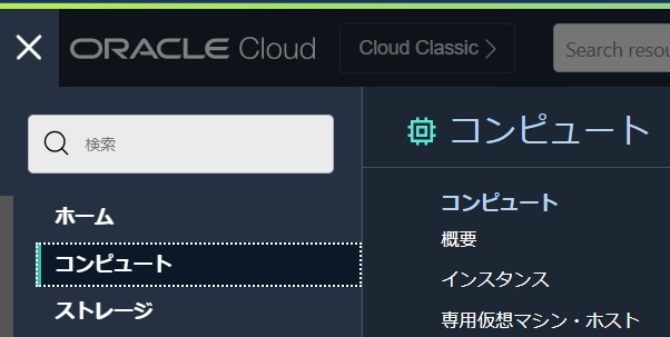 左上のハンバーガーメニューを展開して、「コンピュート」から「インスタンス」を選択します。