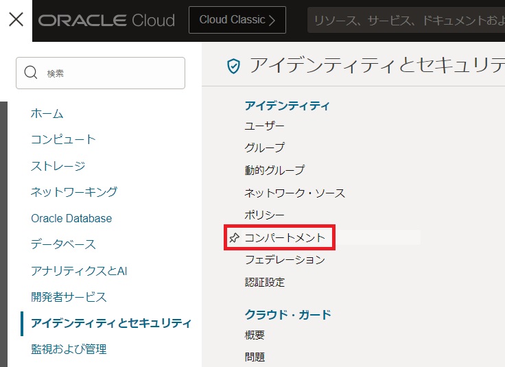 左上のナビゲーション・メニューを展開して、「コンパートメント」を選択してください。