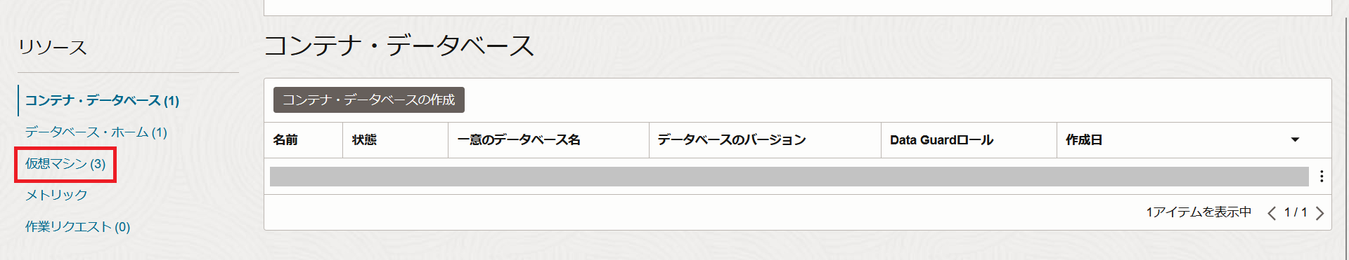 リソースの一覧からプラガブル・データベースをクリックします。