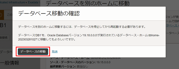 ターゲット・データベース・ホームが選択されていることを確認し、データベースの移動ボタンをクリックします。