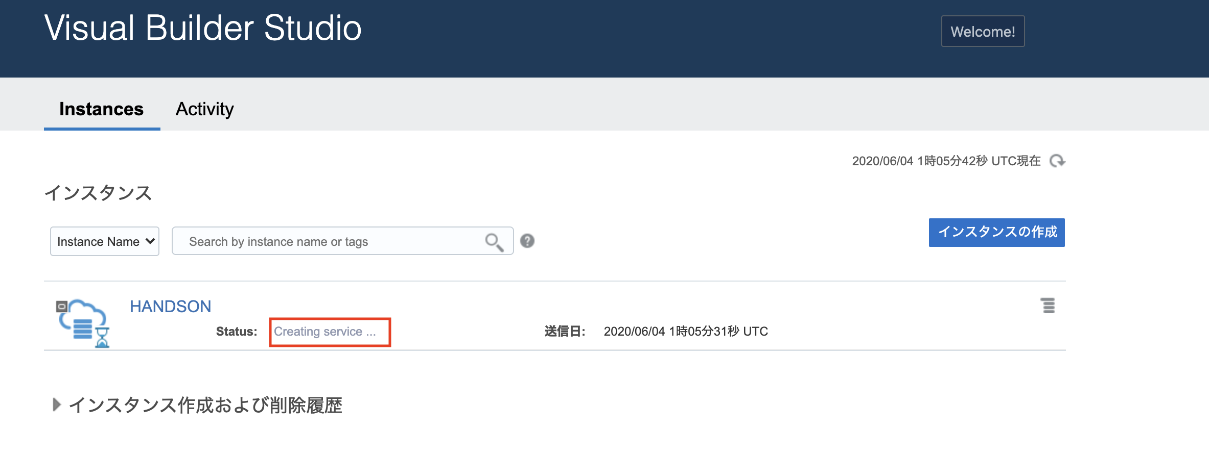 | Instance Name | Visual Builder Studioのインスタンス名。今回は"Handson” |