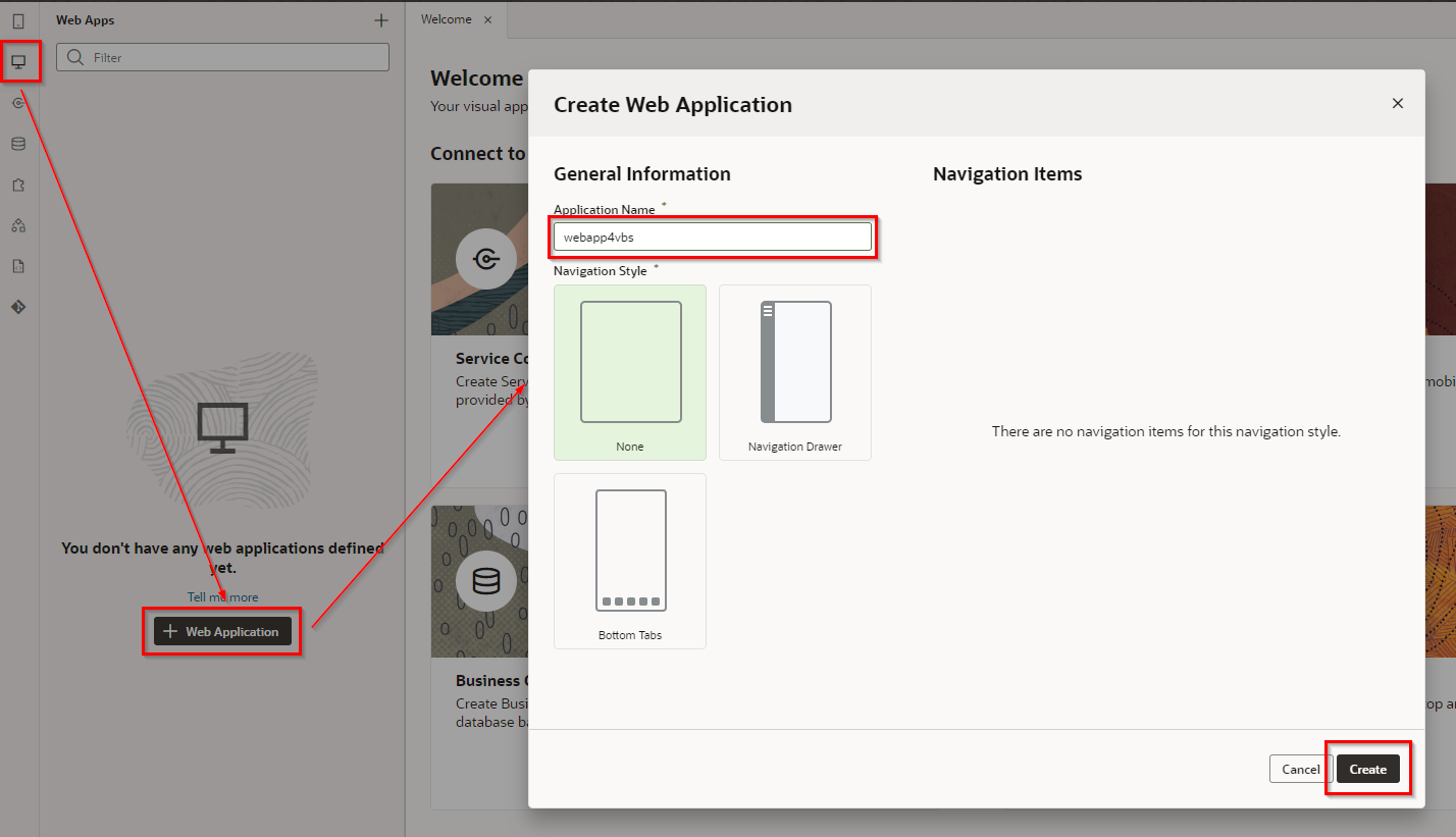 “Visual Application"のStepで利用しているVBCSインスタンスを設定します。