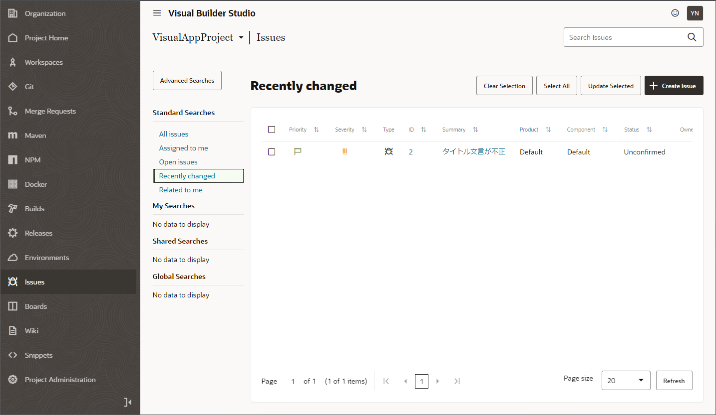 VBSはプロジェクト管理としてIssue機能を提供しています。VBCSでマージリクエストを作成する際にIssueと紐付けることで画面の変更がどのタスクで変更されたか詳細に記録することができます。