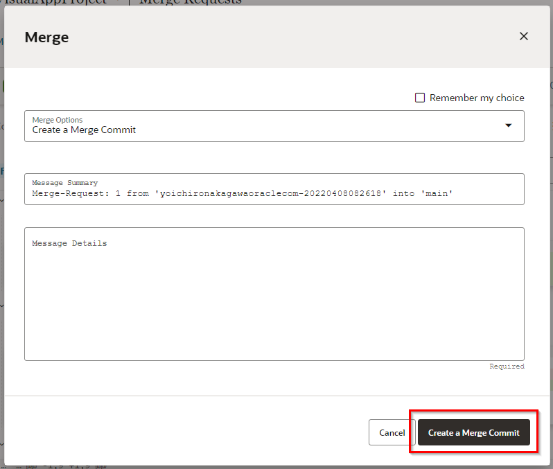 このチュートリアルでは、VBSを使ってVBCSプロジェクトを作成し、簡単なアプリケーションを作成してマージリクエストの承認をトリガーに更新する手順を学習します。