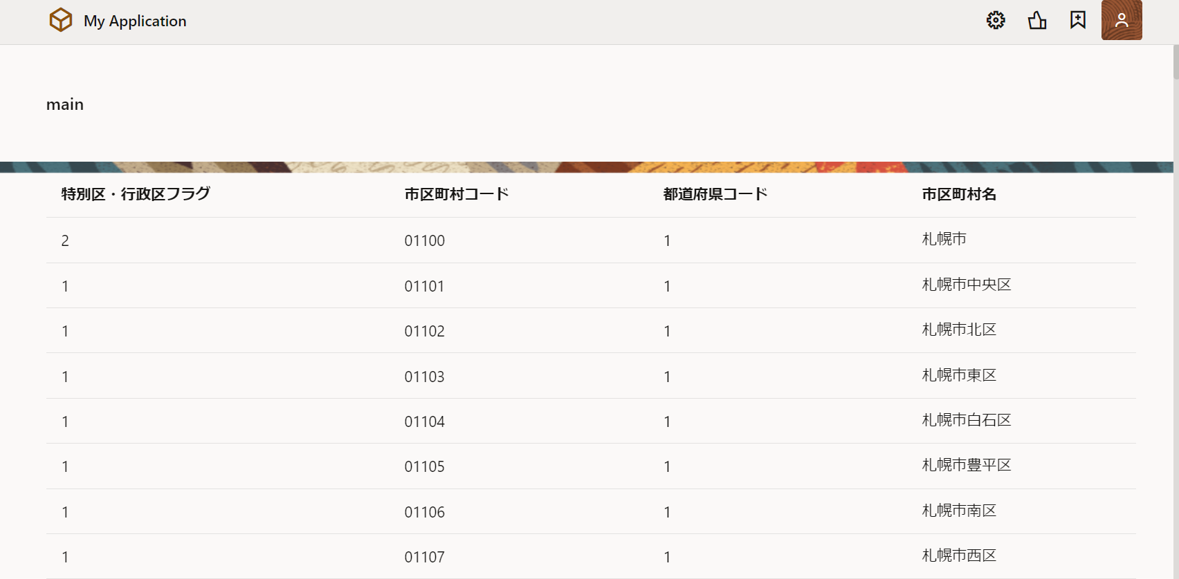 このパートでは、main-startページを編集して、REST エンドポイントによって取得したレコード一覧をテーブル形式で表示します。