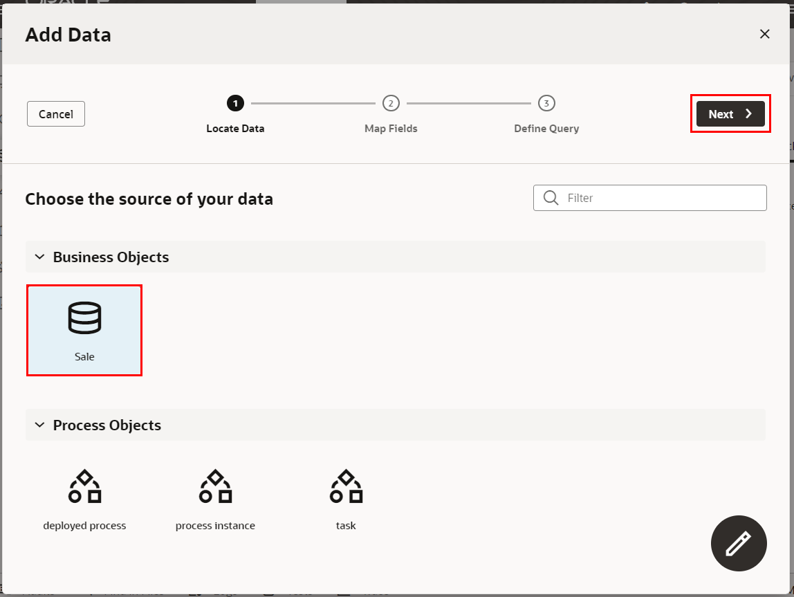 ビジネス・オブジェクトSaleの「Data」 タブをクリックします。